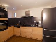 Sfeervolle woonkamer met een zithoek met 2-persoons slaapbank, televisie, DVD-speler, eettafel en een compleet ingerichte open keuken met o.a. een kookplaat, koelkast (met vriesgedeelte), magnetron, oven en vaatwasser. Verder beschikt dit appartement over een wasmachine en droger, Wi-Fi internetverbinding en een balkon op het zuiden.