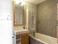 Wij hebben met 7 personen in appartement F7 gezeten dat voor 10-12 personen bedoeld is. We hadden dus alle ruimte. Elk van de 5 slaapkamers beschikt inderdaad over een kleine maar fijne badkamer met een douche, wc en wastafel of bad/douche met wastafel. Er is ook een elektrische verwarming die het snel aangenaam warm maakt. 4 slaapkamers en een aparte WC zijn beneden en boven is de ruime eet/woonkamer en compacte keuken met mega koelkast. De 3 kookpitten is wel aan de magere kant voor 10 personen lijkt ons, maar voor eenvoudige maaltijden is het toereikend. De stoelen en banken zitten uitstekend. Het uitzicht is echt adembenemend! Om te gaan skiën loop je 100meter waar het prima skipad naar Flaine begint. Je moet 1x een korte stoeltjeslift nemen om er te komen, dus zorg dat je de skipas dan al hebt. Je kunt ook met de bus gaan. Terug MOET je met de bus die altijd goed vol zit, zelfs in het laagseizoen. Flaine Resort heeft hele mooie appartementsgebouwen en chalets. Flaine zelf is een saai betondorp, maar daar hoef je verder niet te zijn. Qua liften is het ook een uitstekend gebied. Alles sluit er goed op elkaar aan en er zijn vele pistes per lift. De lunches op de terrassen zijn wel behoorlijk prijzig. Al met al beslist een aanrader! Absoluut veel waar voor het geld omdat de skipas relatief heel goedkoop is i.c.m. het appartement.