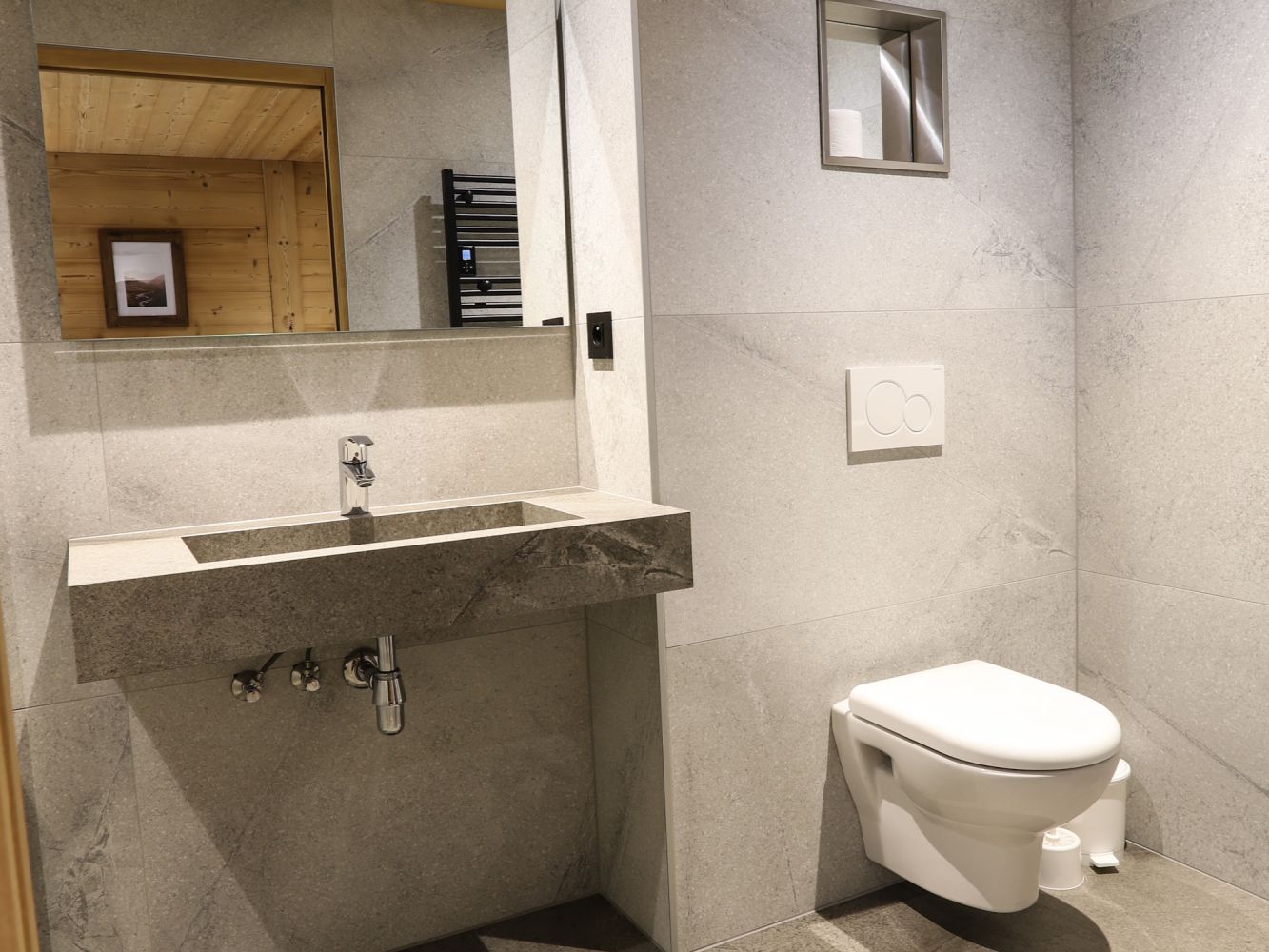 Op de benedenverdieping van het chalet is de privé wellnessruimte te vinden waar de gasten van Appartement Les Seracs toegang hebben tot hun eigen whirlpool en sauna. Tevens is hier ook een badkamer met douche en toilet. Vanuit deze ruimte heb je direct toegang tot de tuin.