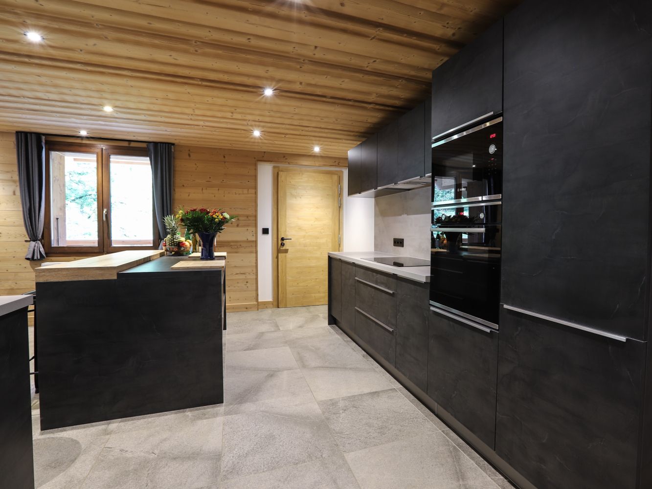 Woonkamer met comfortabele zithoek met openhaard, televisie en radio. De compleet ingerichte open keuken heeft o.a. een inductiekookplaat, koelkast, vriezer, oven, magnetron, twee filterkoffiezetapparaten, een Dolce Gusto koffiezetapparaat, twee waterkokers, racletteset, fondueset, broodrooster en een vaatwasser. Verder beschikt dit chalet-appartement ook over een wasmachine en een droger en is er Wi-Fi.