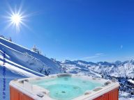 Ruime woonkamer met zit- en eethoek, houtkachel en flatscreen televisie. Open keuken met o.a. inductiekookplaten, oven, magnetron, koelkast, vriezer, koffiezetapparaat, waterkoker en een vaatwasser. Verder beschikt dit chalet over een buiten-whirlpool, wasmachine, skiberging, Wi-Fi, vloerverwarming (gedeeltelijk) en een balkon.