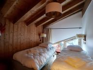 De entree van dit chalet-appartement bevindt zich op de eerste verdieping. Het chalet-appartement is over twee verdiepingen verdeeld.