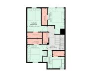 Op de begane grond zijn er drie slaapkamers, waarvan twee met ieder twee 1-persoonsbedden en één kleinere slaapkamer met een stapelbed. Deze slaapkamers hebben ieder een en-suite badkamer met douche. Op de eerste verdieping zijn er drie slaapkamers met ieder twee 1-persoonsbedden en en-suite badkamer met douche. Drie aparte toiletten.