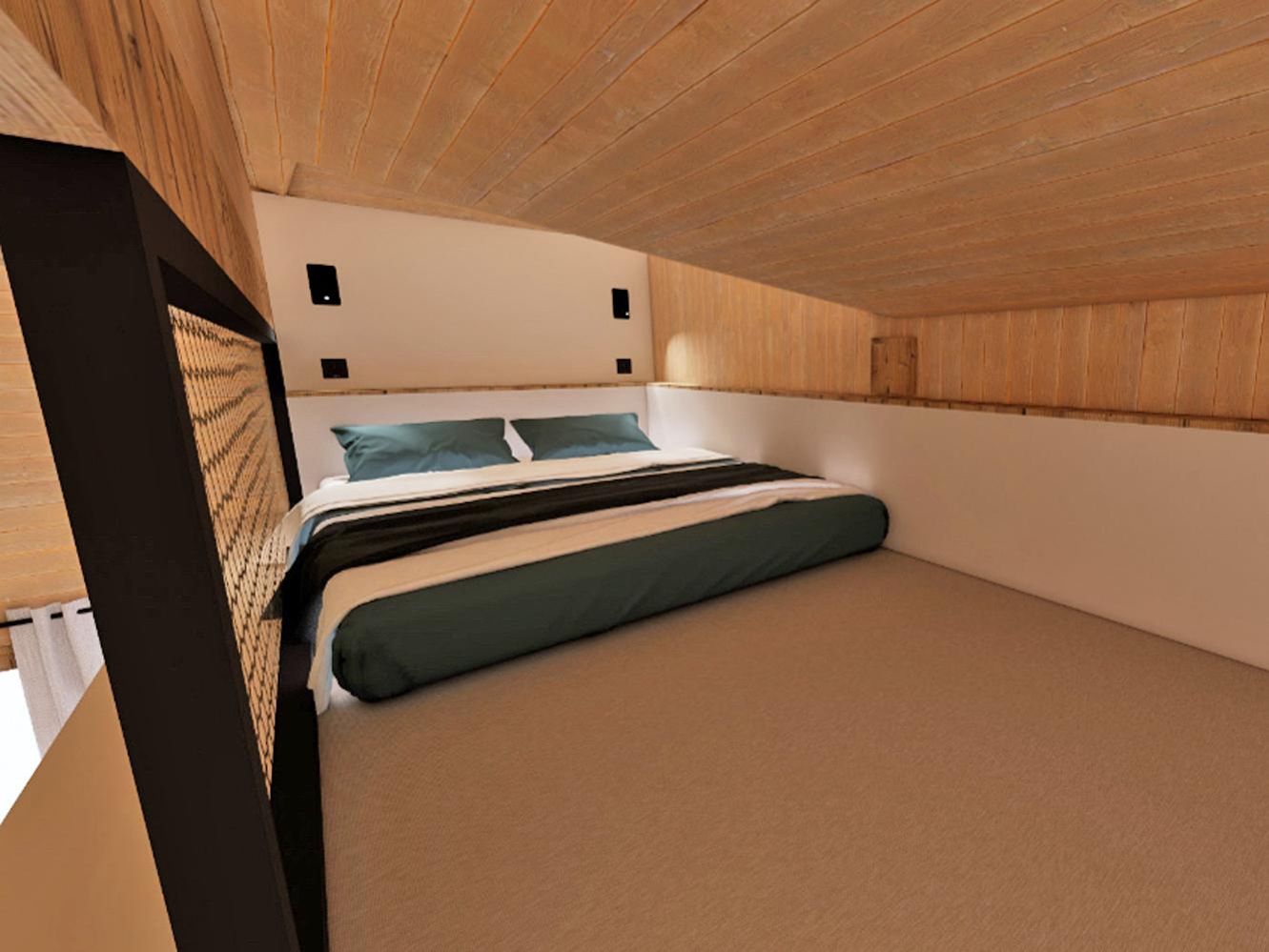 De mezzanines zijn bereikbaar via een ladder en hebben een beperkte stahoogte, waardoor het niet mogelijk is om rechtop te staan.