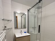 Entree met halletje, ruime gezellige woonkamer met eethoek en zitgedeelte met twee banken, televisie met Nederlandse zenders en open haard. Compleet ingerichte keuken met kookplaten, koelkast, vaatwasser, oven, magnetron, koffiezetapparaat en waterkoker. Vanuit de woonkamer toegang tot het balkon met mooi uitzicht op het tegenover gelegen Montchavin (La Plagne gebied) en de Tarentaise Vallei. Het chalet beschikt over een gratis Wi-Fi internetverbinding.