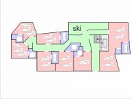 Op de begane grond bevindt zich een mooie wellnessruimte met sauna, stoombad, koud water bassin, twee douches en toilet. Verder is er een fitnessruimte en thuisbioscoop met 12 zitplaatsen, beamer, Blu-Ray/DVD-speler en surround sound system en een verwarmde skiberging met skischoenendroger. Er is ook een bar met een biljarttafel (tegen betaling) en tafelvoetbal. Eén familieslaapkamer met een 2-persoonsbed en twee 1-persoonsbedden en en-suite badkamer met douche en toilet.
