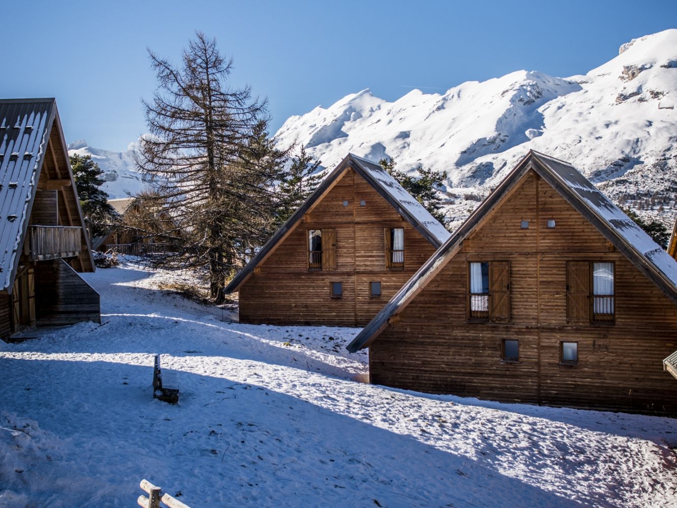 Les Flocons du Soleil bestaat uit 60 houten twee-onder-één-kap chalets, geschikt voor maximaal 7 personen. Les Flocons du Soleil is prachtig gelegen aan de rand van La Joue du Loup. Dit is een vriendelijk en klein skistation tussen Grenoble en Gap in de zuidelijke Alpen. Het centrum met o.a. een aantal winkels en restaurantjes ligt op ongeveer 350 meter loopafstand en de skiliften en pistes van het sneeuwzekere skidomein Devoluy (ca. 100 km pistes) op ca. 500 meter loopafstand. Ook loopt de langlaufloipe onder het chaletpark langs, op ongeveer 50 meter afstand.