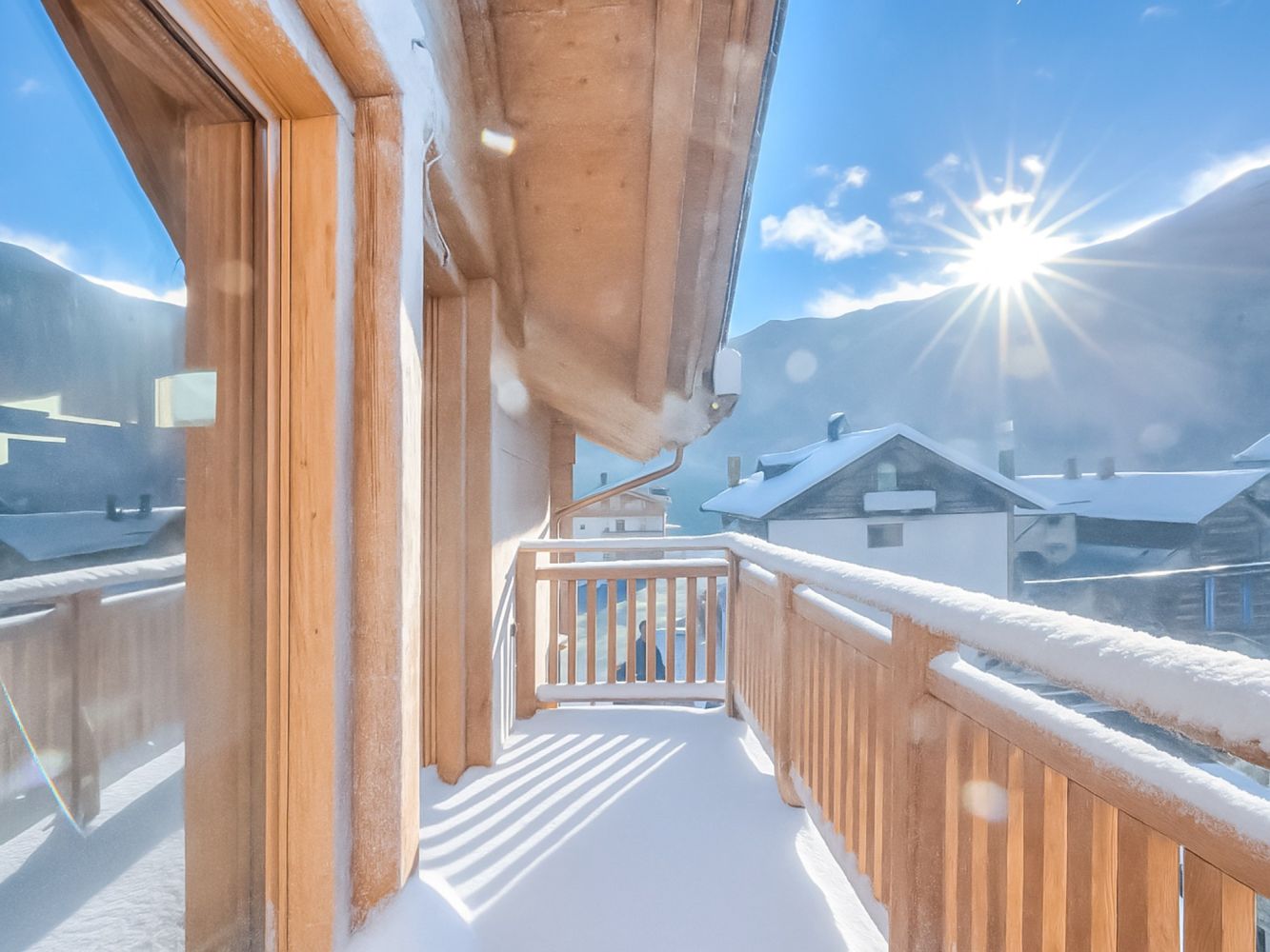 Dit sfeervolle chalet-appartement bevindt zich op de tweede etage. Het appartement is bereikbaar via een buitentrap met 36 treden of met de lift vanuit de parkeergarage.