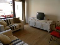 Woonkamer met een zithoek, televisie en een groot 2-persoonsbed. Open keuken met o.a. een 4-pits kookplaat, magnetron, koelkast en vaatwasser. In de hal bevinden zich opbergkasten voor o.a. (ski) kleding. Vanuit de woonkamer kom je op het balkon vanwaar je een mooi uitzicht over de bergen hebt.