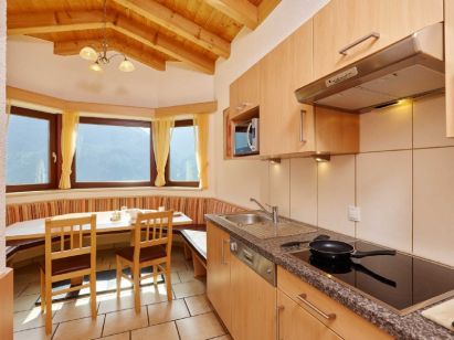 Woonkeuken met eethoek en televisie. Keuken met o.a. een kookplaat, koelkast met vriesvakje, magnetron, koffiezetapparaat, waterkoker en vaatwasser. Verder is er internetaansluiting (Wi-Fi) en een balkon.