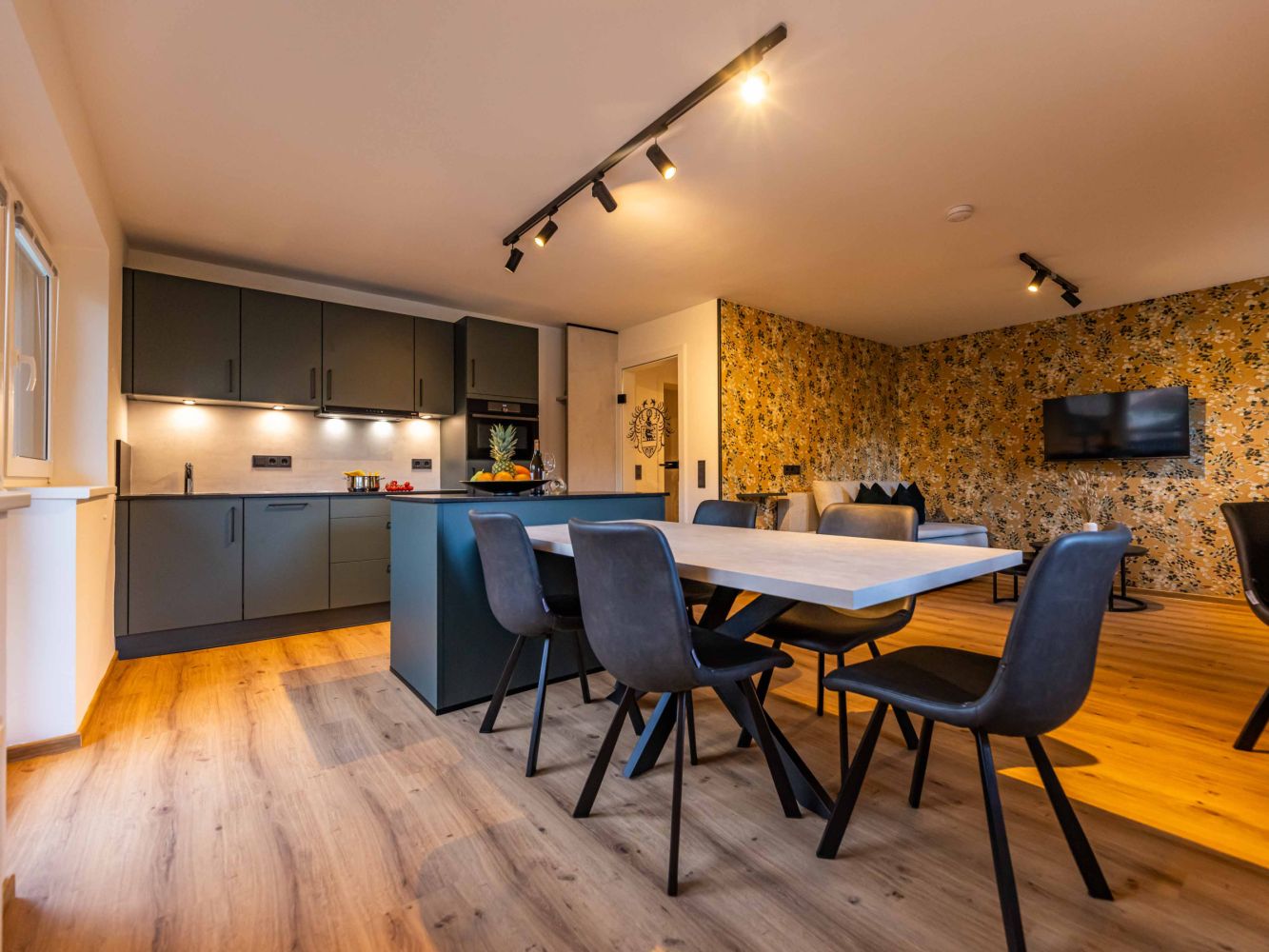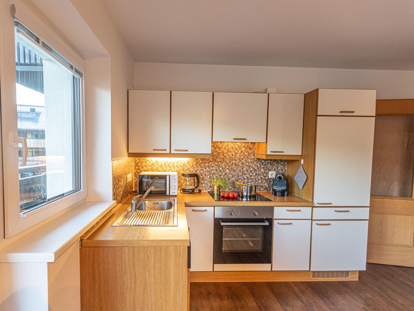 Woonkamer met zithoek met een 2-persoonsslaapbank en flatscreen televisie. Volledig ingerichte keuken met o.a. elektrische kookplaten, oven, magnetron, koelkast met vriesvak, vaatwasser, koffiezetapparaat (Nespresso), waterkoker, broodrooster en eethoek. Verder is er een balkon met uitzicht op de Großglockner.