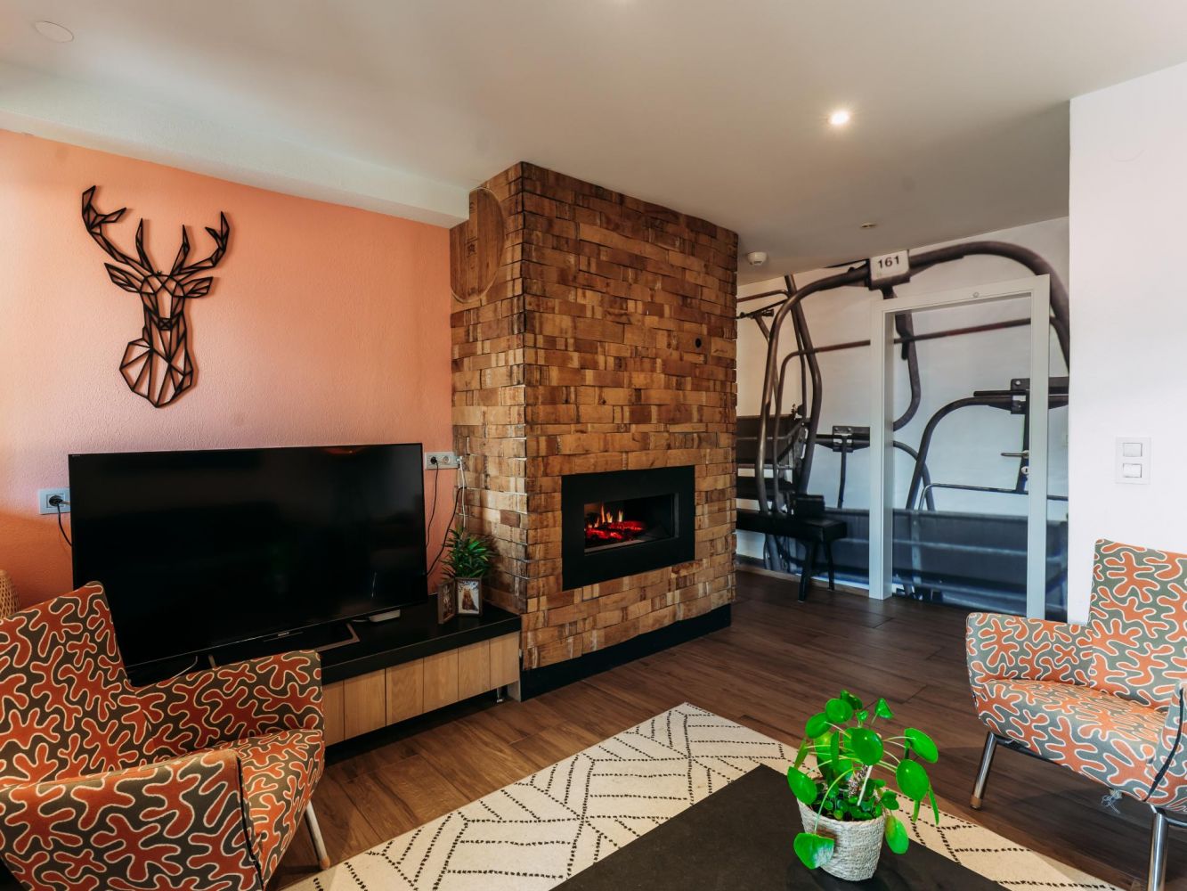 Woonkamer met 2-persoons slaapbank, televisie en eethoek. Volledig ingerichte keuken met o.a. kookplaat, combimagnetron, koffiezetapparaat, koelkast met vriesgedeelte en vaatwasser.