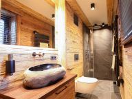 Ruime en comfortabele woonkamer met fijne zithoek, televisie en royale eettafel. Open keuken met o.a. keramische kookplaten, oven, magnetron, koelkast, Quooker-kraan, broodrooster, filterkoffiezetapparaat en vaatwasser. Via de woonkamer is er toegang tot het balkon op het zuiden, hier kan genoten worden van een prachtig uitzicht op de bergwereld en de oefenpiste van Königsleiten. Het chalet beschikt over een skiberging met schoendroger.