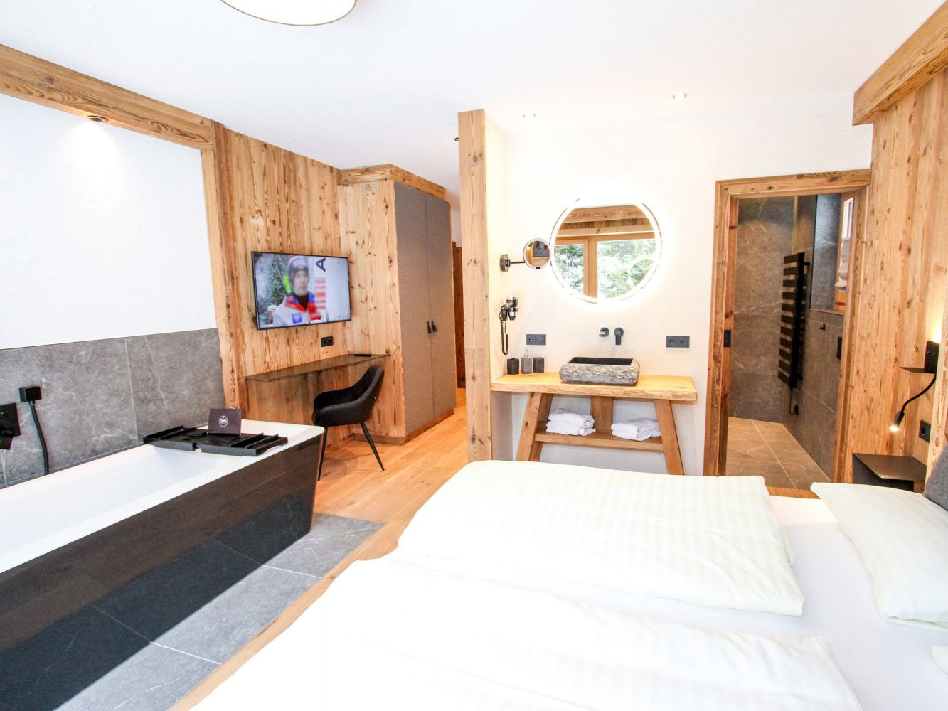 Chalet Pinzgauer Almhütte is een vrijstaand en luxe chalet waar je na een week vakantie niet meer weg wilt gaan. In het chalet is gebruik gemaakt van de prachtigste houtsoorten en natuurlijke materialen. Het absolute hoogtepunt is de privé wellness (50 m2) waar je heerlijk kunt ontspannen en opwarmen na een dagje in de sneeuw. Vanuit je hotpot (een met hout gestookt bad) heb je een prachtig uitzicht vanaf het terras.