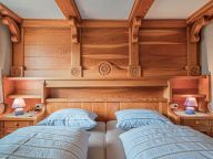 Op de eerste verdieping zijn twee slaapkamers, waarvan één met twee 1-persoonsbedden en wastafel en één met twee 1-persoonsbedden, een wastafel en een zithoekje. Badkamer met bad, douche en toilet. Apart toilet.