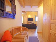 Ruime woonkamer met een gezellige zithoek met televisie, open haard, eettafel en een compleet ingerichte open keuken met o.a. een kookplaat, koelkast (met vriesvak), koffiezetapparaat, magnetron, oven, racletteset, fondueset en vaatwasser. Vanuit de woonkamer heb je toegang tot een ruim balkon met panoramisch uitzicht. Verder beschikt dit chalet over een sauna (tegen betaling van energiekosten) met douche, wasmachine en droger, internet (Wi-Fi), skiberging, terras en gedeeltelijk vloerverwarming.