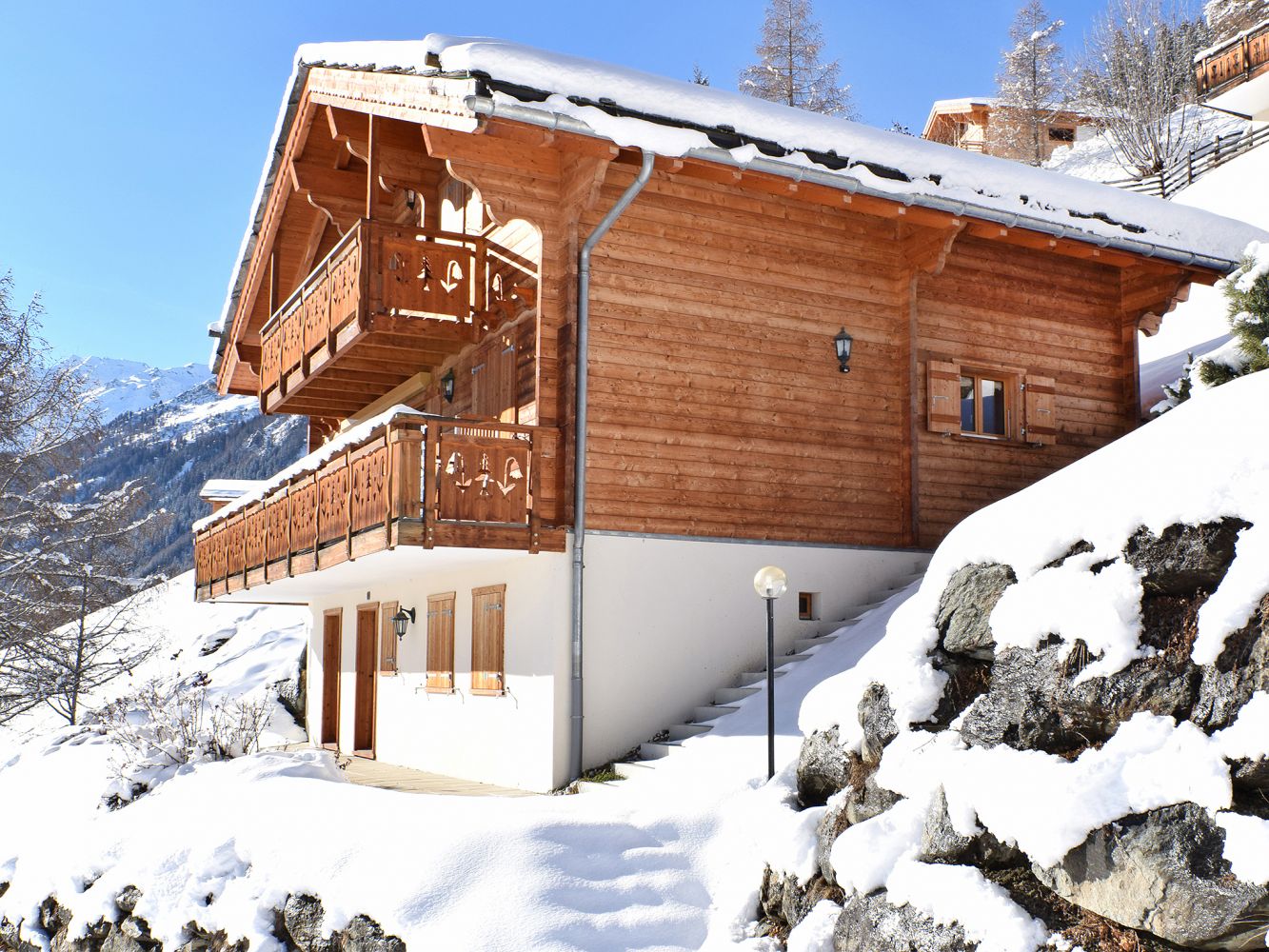 Chalet Mountain Star is o.a. voorzien van een houtkachel, Wi-Fi en een skiberging met skischoenendroger en daarnaast hebben alle slaapkamers in het chalet de luxe van een eigen badkamer! Vanaf het balkon en vanuit de woonkamer met grote panoramische ramen heb je een prachtig uitzicht op de omliggende bergen en de vallei. Er is een garage met plaats voor één auto en er zijn twee privé-parkeerplaatsen buiten bij het chalet.